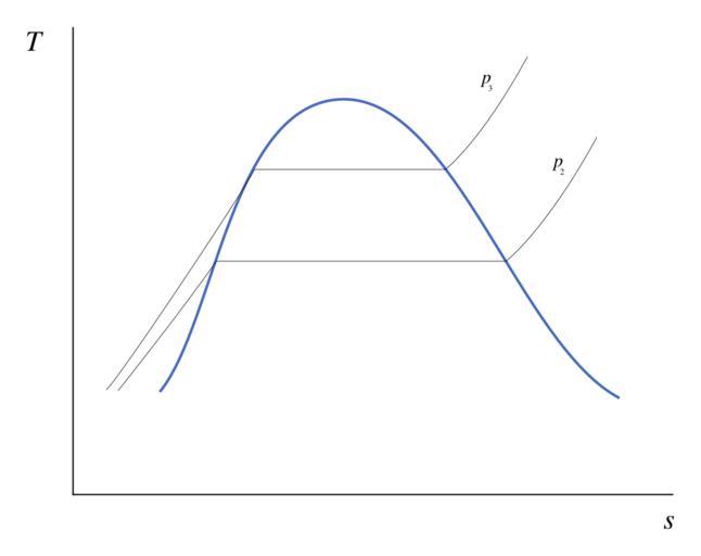 Keywords: T-s diagram for a liquid-vapor.svg en Generic representation of a temperature-entropy diagram for a fluid near its liquid/vapor phase transition The blue curve represents the saturation curve black lines are constant pressure isochoric curves 2013 own Olivier Cleynen other versions cc-zero SVG physics Uploaded with UploadWizard Temperature-entropy diagrams |