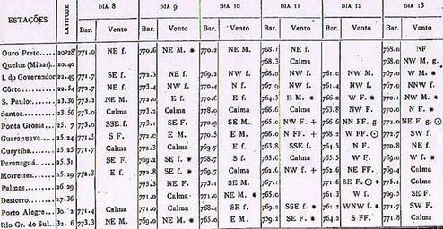 | Keywords: Tabela 8-13-07-1887.jpeg pt Tabela contendo dados meteorológicos do Império do Brasil - pressão e ventos entre os dias 8 e 13 de julho de 1887 elaborados pelo cientista Henrique Morize do Imperial Observatório brasileiro e publicada na revista para explicar a tempestade de 11/07/1887 que atingiu o sul do Brasil e afundou vários navios http //cienciahoje uol com br/colunas/em-tempo/meteorologia-historia-e-tempestades-imprevistas; http //ciencia d2x com br/category/meteorologia/ Henrique Morize 1860-1930 agosto de 1887 PD-Brazil-media PD-old-70-1923 PD-USGov-NASA Imagem reproduzida da ˜Revista do Observatorio ™ Anno II n 8 página 121 agosto de 1887 DisponÃvel também no Acervo NASA's Astrophysics Data System Bibliographic Services Attribution Meteorological diagrams Charts |