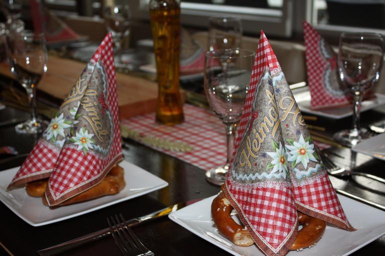 Keywords: table decorations red white checkered napkins oktoberfest festival celebration