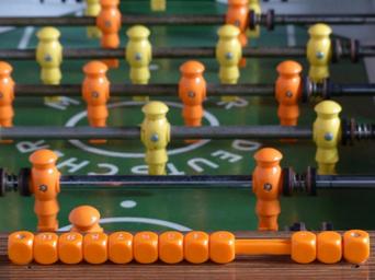 | Keywords: table football counter counting unit sport game device kicker foosball table kicker box wuzzler rotating handle bars handle bars football figures player characters plastic yellow orange table wuzzlkasten football sports game table table game |