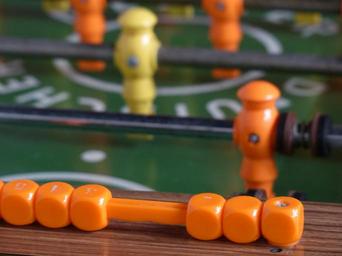 | Keywords: table football counter counting unit sport game device kicker foosball table kicker box wuzzler rotating handle bars handle bars football figures player characters plastic yellow orange table wuzzlkasten football sports game table table game |