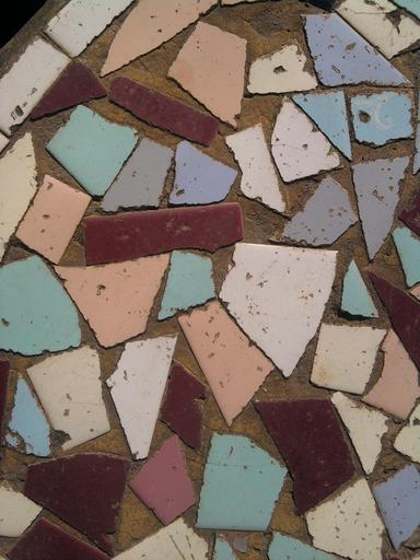 Keywords: table garden garden furniture pink decorated table and benches trim tiles