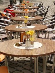 Keywords: table restaurant beer garden sit spring eat dinner ice ice eating deco decoration flower garden furniture street cafe road cafe ice cream parlour drink break after work relax rest vespers beer cup coffee