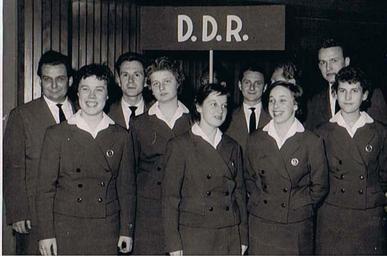 | Keywords: Table tennis world championship 1959 Dortmund - Team DDR.jpg Tischtennisweltmeisterschaft 1959 in Dortmund Deutschland - Nationalmannschaft der DDR<br>Herren von rechts nach links Günter Matthias Heinz Schneider verdeckt Helmut Hanschmann Hans Täger und möglicherweise der Trainer<br> Damen von links nach rechts Christa Bannach Doris Kalweit Ute Mittelstädt Sigrun Kunz Isolde Woschée Table tennis world championship 1959 in Dortmund Germany - National team DDR own 1959 Klaus Eckert PermissionOTRS 2010032610038253 -- Ra'ike <small>T C</small> 10 25 4 April 2010 UTC Klaus Eckert Table tennis players from Germany Sports in the German Democratic Republic |