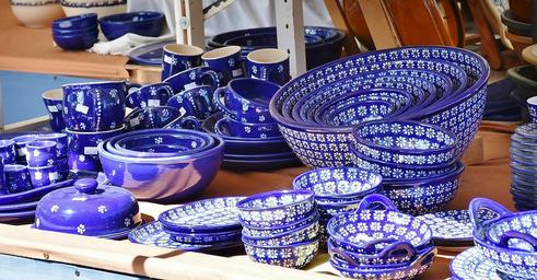 Keywords: tableware plate porcelain stack blue white colorful plate stack service shells bowls dinnerware box ceramic painted glazed decorative market stand buy shopping