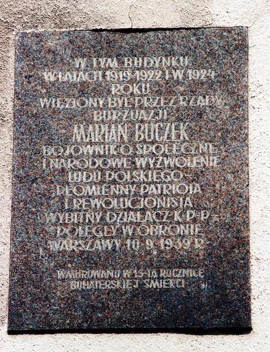 | Keywords: Tablica na Zamku Lubelskim.jpg pl Pamiątkowa tablica wmurowana w ścianę przedsionka Zamku Lubelskiego Pochodzi z czasów PRL i sławi imię komunisty Mariana Buczka own Tomasz Zugaj 51 15 2 N 22 34 18 E Plaques in Lublin Lublin Castle Z Marian Buczek 1896-1939 Cc-zero |