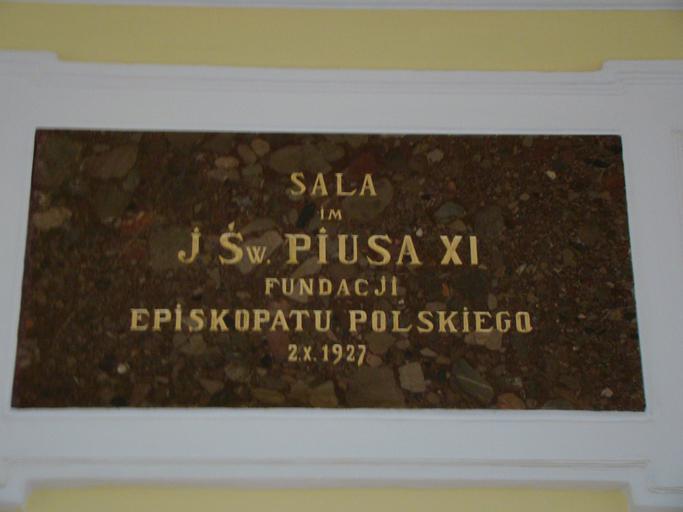 Keywords: Tablica Piusa XI.JPG pl Tablica z informacją o sali im Piusa XI na KULu own Leszko20 2010-04-24 Pius XI KUL in Lublin Plaques in Lublin