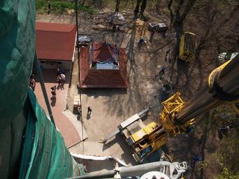 Keywords: Tabor-galerie-rekonstrukce-08.jpg cs Pohled na přípravy pod věží own Michael Gróf 2006-05-05 Rozhledna Tábor Liebherr cranes