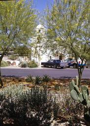 Keywords: taco market place church religion trees road new mexico usa southwest usa building architecture mexican style mexican church ancient