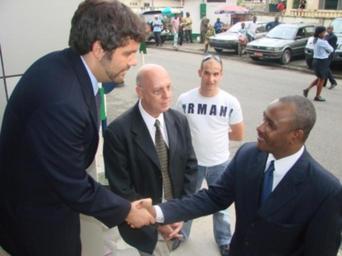 | Keywords: Tad Brown and Oumarou Fadil.JPG Political Officer Tad Brown welcomes th mayor of Douala III Oumarou Fadil to the opening of the U S Embassy branch office in Douala 31 August 2007 From the http //yaounde usembassy gov/uploads/images/Ley8xhhmMQBkHAa0bBy9DA/DSC01134 JPG U S Embassy website Politicians of Cameroon Embassies of the United States People of Cameroon PD-USGov |