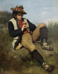 | Keywords: Tadeusz Ajdukiewicz The shepherd boy.jpg The shepherd boy Signed inscribed and dated 'T Ajdukiewicz f/Munchen 1875 ' lower left oil on canvas 132 5 x 102 5 cm http //www bonhams com Bonhams 1875 Creator Tadeusz Ajdukiewicz PD-old-70-1923 Images from Bonhams Tadeusz Ajdukiewicz Paintings of boys playing musical instruments Shepherds in art 1875 paintings Sheepskin clothing in art Fur vests in art Children with fur in art Paintings of boys sitting on the ground outdoors Pastoral portraits Fur fashion in 1875 |