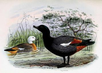 | Keywords: Tadorna variegata 1873.jpg « Tadorna variegata » Tadorna variegata Paradise shelduck - male and female « Tadorna variegata » Tadorna variegata Tadorne de paradis - mâle et femelle http //archive org/stream/onzevogelsinhuis02keul page/n397/mode/2up Onze vogels in huis en tuin creator John Gerrard Keulemans 1873 PD-old-100 Tadorna variegata Onze vogels in huis en tuin - vol 2 |