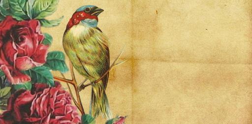 Keywords: tag banner web banner vintage parchment paper roses bird red yellow green abstract empty template label decoration wide rectangular blank page creative design