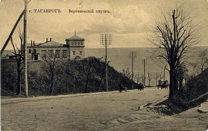 Keywords: Taganrog Vorontsovskii spusk.jpg Во онцовский спуск Таган ог Отк ытка издания К В Василевского 646/25 А хив Анны Астаховой Author 1890 PD-Old Taganrog