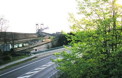 Keywords: Tagebau Bergheim B 477.JPG de Tagebau Bergheim 2009 mit der Bundesstraße 477 bei Niederaußem im Vordergrund own Alexander Orth 11 04 2009 Bergheim Open-pit lignite mines in the Rhenish area