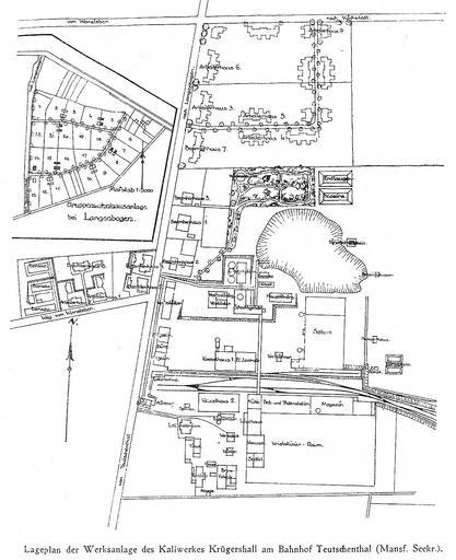 | Keywords: Tagessituation-Krügershall.png Lage der Tagesanlagen sowie der Arbeiter- und Beamtenwohnhäuser des Kaliwerkes Krügershall um 1925 Betriebsarchiv GTS Teutschenthal 1925 Unbekannt; Recherche/Bildbearbeitung in 2012 Dr Günter Pinzke http //www guenter pinzke de PD-old Category Historical mines in Saxony-Anhalt Maps of salt mines in Saalekreis Salt mines in Germany |