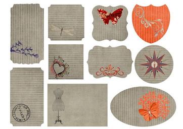 Keywords: tags label collage sheet template butterfly vintage paper scrapbook natural orange red message design exclusive information label design merchandise price tag pricetag price