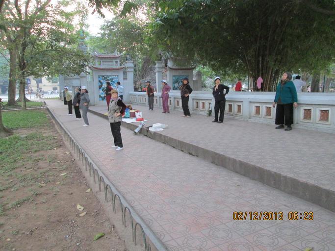 Keywords: 'Taichi'exercises near Hoan Kiem lake..JPG en Hanoians doing Taichi Exercises early in the morning own Rudolph A Furtado Monday 2-12-2012 People at Hoan Kiem Lake Cc-zero