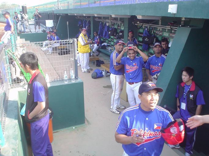 | Keywords: Taichung Intercontinental Baseball Stadium02.jpg A look inside the first base dugout with players and coaches from the Philippines in the inagural game of Taichung Intercontinental Baseball Stadium in a 2006 Intercontinental Cup game played on September 9 2006 Photo taken on September 9 2006 2006-11-09 own assumed Ludahai Baseball dugouts National baseball teams Intercontinental Cup baseball | ||||