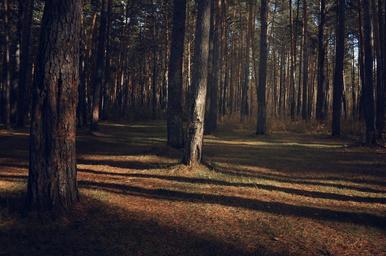 Keywords: taiga pines nature landscape fall forest slope trunks dark