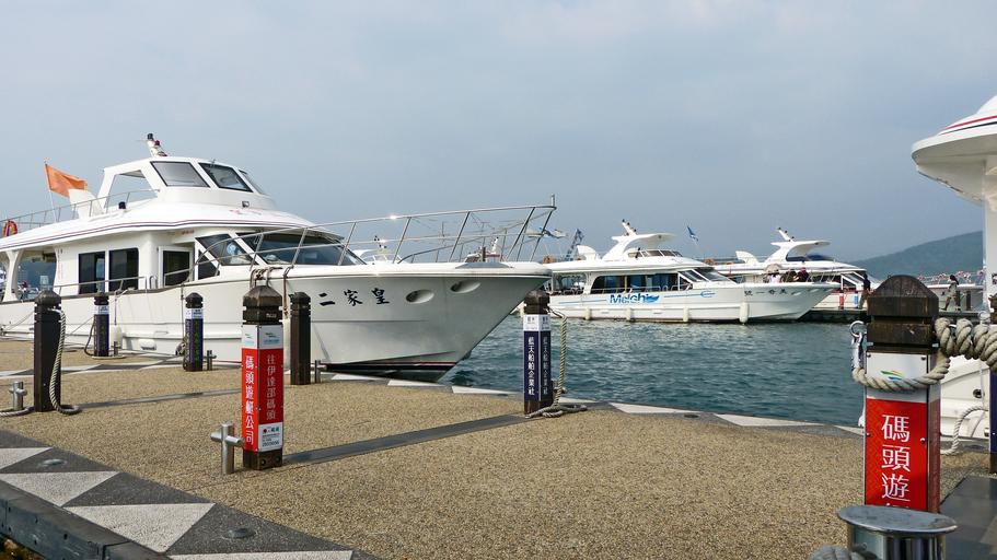Keywords: taiwan republic of china sun moon lake water tourism relaxation sky mountains scenery tourist attraction boat pier rope