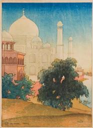 | Keywords: Taj Mahal, Sunset by Charles Bartlett, woodblock, 1920 (Alt.).jpg Artwork en Taj Mahal Sunset 1920 woodblock print in 15 10 5 Institution Honolulu Museum of Art http //honolulumuseum org/art/5512-taj-mahal-sunseta_z object history exhibition history credit line accession number 5379 Honolulu Museum of Art / Published in Japan by Watanabe Shōzaburō in 1920 PD-old-auto-1923 1940 PD-Japan DEFAULTSORT Bartlett Charles Woodcuts by Charles W Bartlett Taj Mahal Sunset Charles W Bartlett in the Honolulu Museum of Art Taj Mahal Sunset Historical images of the exterior of the Taj Mahal in art |