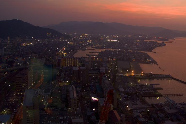 Keywords: Takamatsu Night View M3705.jpg This photograph shows a night sunset view of the harbor of Takamatsu Kagawa Prefecture Japan I took this photo from the top floor of the 30 story Symbol Tower Night in Takamatsu 2006-08-06 own assumed Fg2
