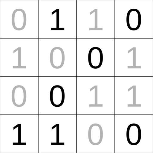 Keywords: Takuzu solved grid.svg Inkscape Takuzu grid; the black numbers were given and the grey ones are filled in Unsolved grid is File Takuzu unsolved grid svg 2011-08-25 own Eviatar Bach cc-zero Uploaded with UploadWizard Logic puzzles Files by User InverseHypercube |
