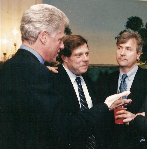 | Keywords: Talbot Clinton.jpeg en from left to right former President Bill Clinton White House adviser Mark Penn David Talbot White House photographer Joe Talbot 1998 Journalists from the United States Alumni of the University of California Santa Cruz Bill Clinton in 1998 |