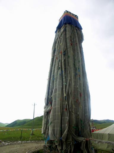 Keywords: Tall prayer flag post.jpg A tall post with Tibetan pray flags near Tagong Temple Ganzi Sichuan China Own 2005-07 Munford public domain Culture of China Culture of Tibet