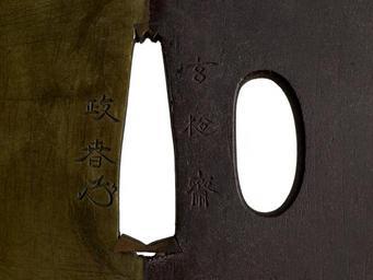 | Keywords: Tamagawa Masaharu - Tsuba with a Temple Guardian Statue - Walters 51222 - Mark A.jpg The fierce figure on the right of this tsuba is one of the paired guardians ni-ô who guard the main south gate at Buddhist temples in Japan The fierce figures protect temples from evil spirits The dove on the left side of the composition is a symbol of the Shinto deity Hachiman the deified form of the Emperor Ôjin died 310 The gate guardian shown here may be from the Tsurugaoka Hachiman shrine and temple complex in Kamakura Both guardians were transferred to another site in the late 19th century when Buddhist objects were removed from Shinto shrines On the reverse of the tsuba is a crescent moon 1st half Other date century 18 Edo iron sentoku gold silver copper cm 8 9 8 08 0 49 accession number 51 222 27079 Henry Walters Baltimore date and mode of acquisition unknown Walters Art Museum Henry Walters Acquired by Henry Walters Signature Genshosai/Masaharu place of origin Edo present-day Tokyo Japan Walters Art Museum license Tsuba in the Walters Art Museum Media contributed by the Walters Art Museum needs category review Tamagawa Masaharu |