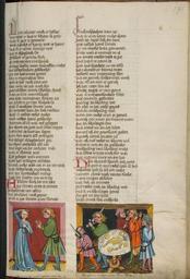 | Keywords: Tamar and Amnon (Weltchronik, Getty).jpg Tamar Complaining to Absalom; Absalom Ordering the Death of Amnon; Unknown; Regensburg Bavaria Germany; about 1400 - 1410; Tempera colors gold silver paint and ink on parchment; Leaf 33 5 x 23 5 cm 13 3/16 x 9 1/4 in ; Ms 33 fol 195 http //www getty edu/art/collection/objects/1968/unknown-maker-tamar-complaining-to-absalom-absalom-ordering-the-death-of-amnon-german-about-1400-1410/ 1400 - 1410 anonymous Death of Amnon Tamar 2 Samuel Getty Center manuscripts Files uploaded by Shakko from various sources PD-old |