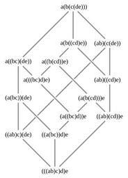 Keywords: Tamari lattice.svg Hasse diagram of a Tamari lattice Le diagramme de Hasse d'un treillis de Tamari Own David Eppstein 2008-11-22 Associahedron K5 Tamari lattice T4 Hasse diagrams Files by User David Eppstein from en wikipedia