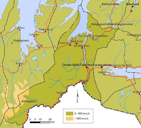 Keywords: Tana map.jpg en Map of Tana municipality Norway Own Jensens 2008-12-05 Maps of Finnmark Tana