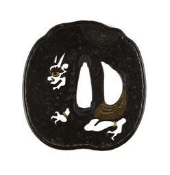 | Keywords: Tanaka Kiyotoshi - Tsuba with an "Oni" (Demon) - Walters 5190 - Back.jpg A demon called an oni in Japanese is depicted crouched down looking at mushrooms Kiyotoshi cleverly crafted the demon's body using the holes for the sword and short knife found in any tsuba The demon wears the typical costume of a tiger skin loincloth and carries a Chinese-style fan Gold highlights the demon's eyes wrist ankle and loincloth The reverse shows the demon in left profile under a full moon While demons were originally symbols of evil they are often depicted in humorous situations between 1804 1876 Edo iron with copper alloy gold silver cm 7 1 accession number 51 90 26675 Henry Walters Baltimore date and mode of acquisition unknown Walters Art Museum Henry Walters Acquired by Henry Walters Signature Ikkashi Signature Ryûsô Hôgen place of origin Edo present-day Tokyo Japan Walters Art Museum license Tsuba in the Walters Art Museum Tanaka Kiyotoshi Media contributed by the Walters Art Museum needs category review Loincloths in art |
