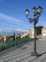 | Keywords: Taormina-Piazza IX Aprile.JPG en View of Mt Etna from Piazza IX Aprile - Taormina Italy Own Evan Erickson 2004-03-10 Piazza IX Aprile Taormina Mount Etna viewed from Taormina Lanterns in Italy Street lights in Italy Taormina Interlocking stones Pavements of Italy |