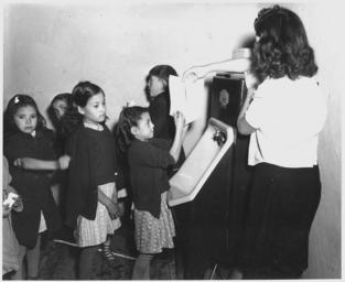 | Keywords: Taos County, New Mexico. Children wash their hands before lunch at the Penasco School. The washing . . . - NARA - 521839.tif Scope and content Full caption reads as follows Taos County New Mexico Children wash their hands before lunch at the Penasco School The washing machine is as new as the hot lunch program General notes 521839 Local identifier 83-G-41603 Department of Agriculture Bureau of Agricultural Economics Division of Economic Information ca 1922 - ca 1953 NARA-Author Rusinow Irving Photographer 5307166 <br /> Still Picture Records Section Special Media Archives Services Division NWCS-S National Archives at College Park 8601 Adelphi Road College Park MD 20740-6001 12/1941 Record group Record Group 83 Records of the Bureau of Agricultural Economics 1876 - 1959 Record group ARC 412 Photographic Prints Documenting Programs and Activities of the Bureau of Agricultural Economics and Predecessor Agencies compiled ca 1922 - ca 1947 documenting the period ca 1911 - ca 1947 Series ARC 521048 File unit File unit ARC Variant control numbers NAIL Control Number NWDNS-83-G-41603 yes Other versions <gallery> File Taos_County _New_Mexico _Children_wash_their_hands_before_lunch_at_the_Penasco_School _The_washing_ _ _ _-_NARA_-_521839 tif tif File Taos_County _New_Mexico _Children_wash_their_hands_before_lunch_at_the_Penasco_School _The_washing_ _ _ _-_NARA_-_521839 jpg jpg </gallery> NARA-cooperation PD-USGov Irving Rusinow 1941 in Taos County NARA TIF images with categorized JPGs |