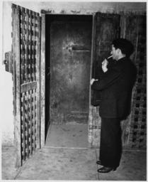 | Keywords: Taos County, New Mexico. Sheriff Montoya displays, with some pride, the tiny cell in which are lock . . . - NARA - 521886.jpg Scope and content Full caption reads as follows Taos County New Mexico Sheriff Montoya displays with some pride the tiny cell in which are locked drunks who won't behave or special important tough prisoners with whom he wishes to take no chances The box in which his hand holds the inserted key is an enormous lock which holds the bolt of the cell door Cell is the size of a large closet General notes 521886 Local identifier 83-G-41659 Department of Agriculture Bureau of Agricultural Economics Division of Economic Information ca 1922 - ca 1953 NARA-Author Rusinow Irving Photographer 5307166 <br /> Still Picture Records Section Special Media Archives Services Division NWCS-S National Archives at College Park 8601 Adelphi Road College Park MD 20740-6001 12/1941 Record group Record Group 83 Records of the Bureau of Agricultural Economics 1876 - 1959 Record group ARC 412 Photographic Prints Documenting Programs and Activities of the Bureau of Agricultural Economics and Predecessor Agencies compiled ca 1922 - ca 1947 documenting the period ca 1911 - ca 1947 Series ARC 521048 File unit File unit ARC Variant control numbers NAIL Control Number NWDNS-83-G-41659 Other versions <gallery> File Taos_County _New_Mexico _Sheriff_Montoya_displays _with_some_pride _the_tiny_cell_in_which_are_lock_ _ _ _-_NARA_-_521886 tif tif File Taos_County _New_Mexico _Sheriff_Montoya_displays _with_some_pride _the_tiny_cell_in_which_are_lock_ _ _ _-_NARA_-_521886 jpg jpg </gallery> NARA-cooperation PD-USGov Irving Rusinow 1941 in Taos County |