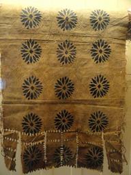 | Keywords: Tapa cloth with black designs and fringe, Fiji, collected 1930 - Pacific collection - Peabody Museum, Harvard University - DSC05739.JPG Exhibit from the Pacific Collection Peabody Museum Harvard University Cambridge Massachusetts USA Photography was permitted without restriction; exhibit is old enough so that it is in the public domain Daderot 2012-03-18 14 50 05 Daderot cc0 cc0 Pacific Collection Peabody Museum Harvard University Tapa cloth Art of Fiji | ||||