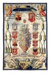 | Keywords: Tapet föreställande så kallad kardinalshatt - Skoklosters slott - 13518.tif LSH artwork sv Tio vapensköldar omsluter stor blomsterurna Upptill kardinalshatt i hörnen två änglar med trumpeter nedtill i hörnen en flodgud och flodgudinna mellan dessa textband med NICOLAVS ALBERTVS AB OLEXOW GNIEWOSZ DEI GRATIA EPISCOPVS VLADISLAVIENSIS E POMERANIAE E C 1645 <br/>Av ylle och silke 8-9 trådar per kv cm i gobelängteknik original caption Tapet föreställande så kallad kardinalshatt 1645 size mm 2300 3390 SKO Nikolaus Albertus Gniewosz Biskop Nils Bielke greve fältmarskalk 1644-1716 place of origin original filename lm_t07938 24935 inventory number SKO 3641 13518 CC-BY-SA Samuel Uhrdin <gallery caption Different images of same object > File Tapet föreställande Nicolaus Albertus d'Olexow Gniewosz' stamträd - Skoklosters slott - 51622 tif File Tapet som visar kardinalshatt med anvapen Krakow 1645 - Skoklosters slott - 266 tif </gallery> Tapestries in Skoklosters slott Samuel Uhrdin Gniewosz family Media contributed by LSH 2014-11 |
