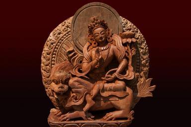 Keywords: tara female peaceful manifestation enlightened wisdom the saviour sculpture wood carved buddhism