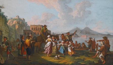 | Keywords: Tarantella at Palazzo Donn'anna by Pietro Fabris.jpg en Tarantella at Palazzo Donn'anna with Vesuvius in the Background by Pietro Fabris oil on canvas 40 by 73 6 cm Sotheby's Creator Pietro Fabris Pietro Fabris Tarantella in art Palazzo Donn'Anna Napoli in art Vesuvius in art PD-old-100 |