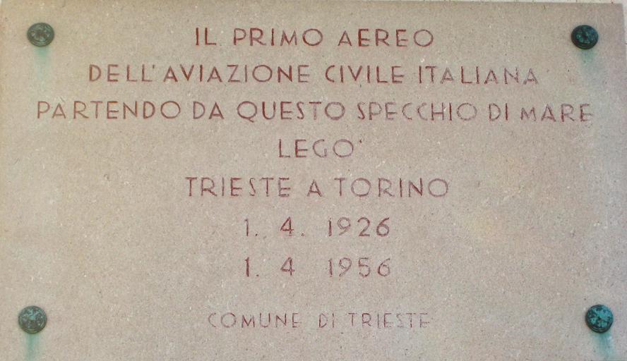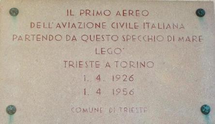 | Keywords: Targa idrovolanti molo Audace.jpg it Italy - Trieste - Targa alla radice del molo Audace che ricorda il primo volo di linea degli idrovolanti 2009-10-29 own Tiesse cc-zero Uploaded with UploadWizard Molo Audace Trieste Plaques in Trieste Plaques referencing 1926 Plaques installed in 1956 |