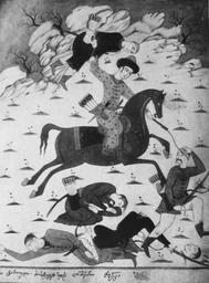 Keywords: Tariel killing Rostevan's soldiers (Georgian miniature, 17th century).jpg en Tariel killing Rostevan's soldiers A miniature from the manuscript of the Knight of the Panther's Skin by Shota Rustaveli century 17 ამირა აშვილი შ ქართული ხელ ვ ების ისტ რია Tbilisi 1971 author The Knight in the Panther's Skin by Tseretliseuli Georgia in the 17th century Medieval miniatures of battles PD-Art |