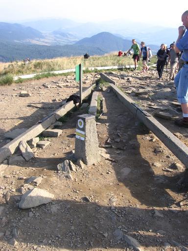 Keywords: Tarnica stone.jpg Tarnica - land measurement stone on the peak <br>Znak geodezyjny i przewrócony trianguł na szczycie Tarnicy Own 16 IX 2006 User PM / pl Wikipedysta P Tarnica