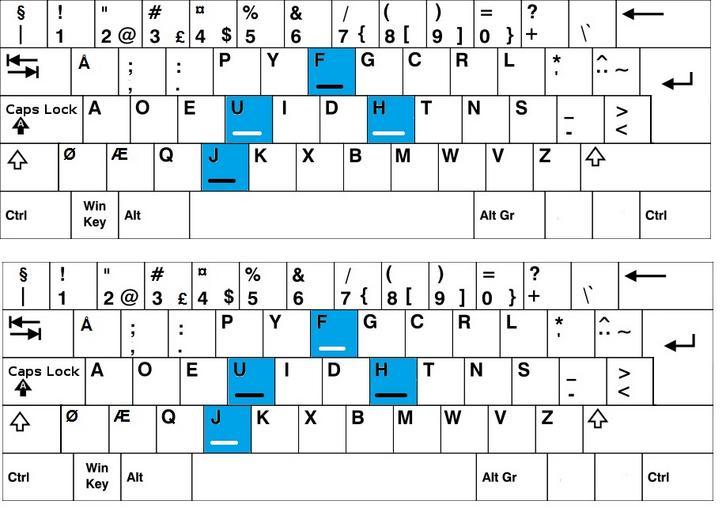 | Keywords: Tastatur med fingermerker, dvorak og qwerty.jpg nb Viser manglende fingermerker og feil fingermerker når man gjør om et tastatur fra qwerty til dvorak øverste tastaturet og hvordan fingermerker på et originalt dvorak-tastatur skal se ut nederste tastaturet 2007-07-24 04 06 09 own Oddiss1985 cc-zero Uploaded with UploadWizard Dvorak keyboard layouts |
