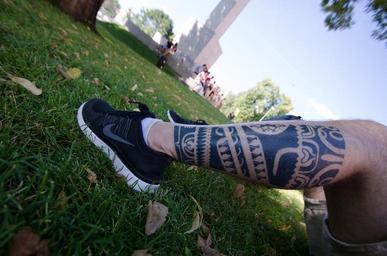 Keywords: tattoo leg black man nike grass nature person skin polynesian