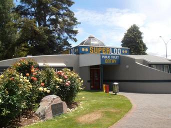 | Keywords: Taupo Superloo.jpg Taupo public toilet<br> The Taupo Superloo is an exception to the New Zealand Public Hygiene policy <br> because a loo fee ist taken It offers also showers for another fee 2015-12-15 Own Sarang 38 41 15 9 S 176 4 7 9 E Public toilets in New Zealand Taupo |