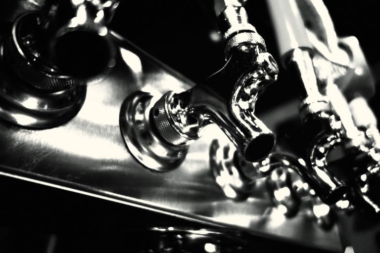 Keywords: tavern beer taps bar taps beer tappers draft alcohol drink lager pint ale booze pour bartender brew hops liquid foam barrel froth beverage black and white