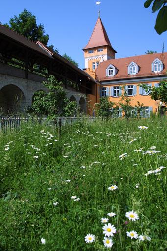 Keywords: tax office stork tower city tower battlement historically bavaria summer meadow flowers state plant tower places of interest